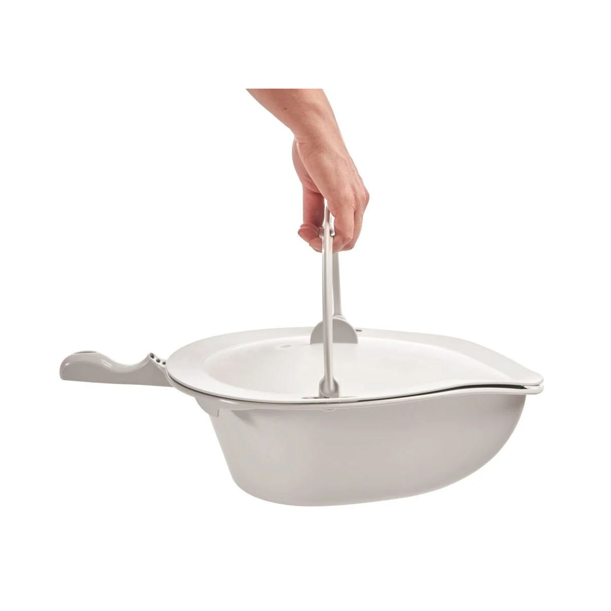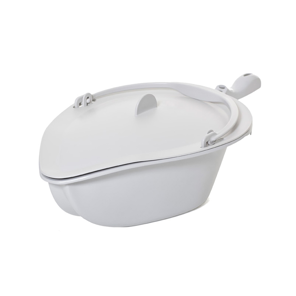 Das Becken mit Deckel und Handgriff ist speziell für den Dusch-Toilettenstuhl Clean konzipiert. Die Anwendung ist unkompliziert und hygienisch. Das Becken kann einfach unter den Clean Dusch- und Toilettenstuhl geschoben werden. Hinweis: Für die Befestigung sind die entsprechenden Beckenhalter (031-0095) notwendig. Produktdetails zu Becken mit Deckel und Haltegriff: