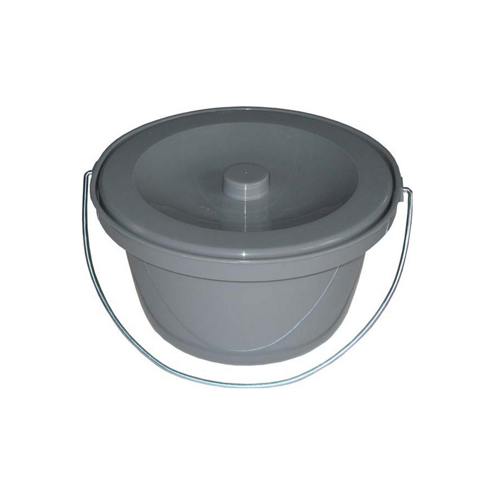 Der graue Toilettenstuhl-Eimer besteht aus robustem Kunststoff und ist mit einem Deckel ausgestattet. Er passt auf alle Standard-Toilettenstühle und stellt eine praktische und zuverlässige Lösung für den täglichen Gebrauch dar.