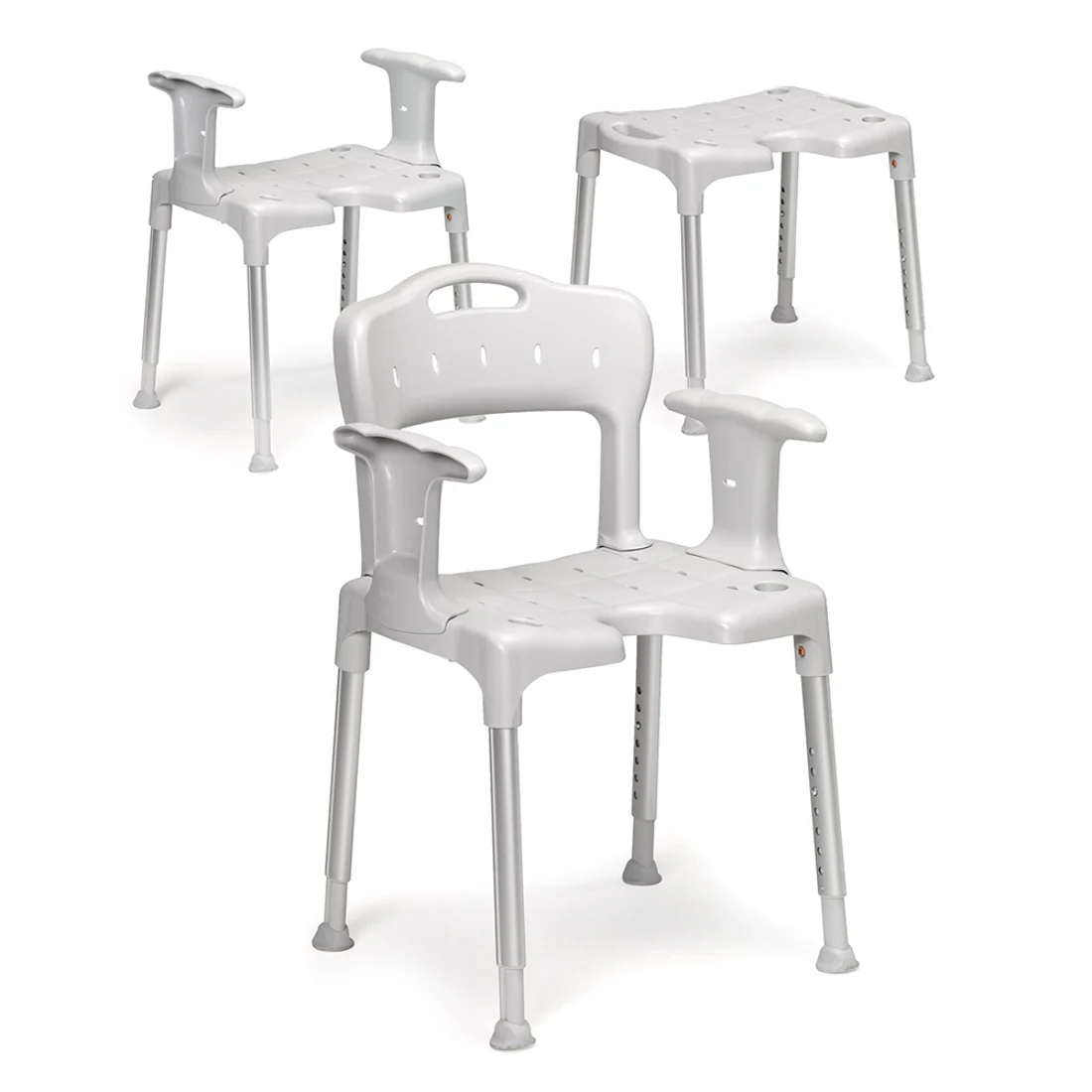 - Modulares Konzept: Kann als Duschhocker oder Duschstuhl verwendet werden