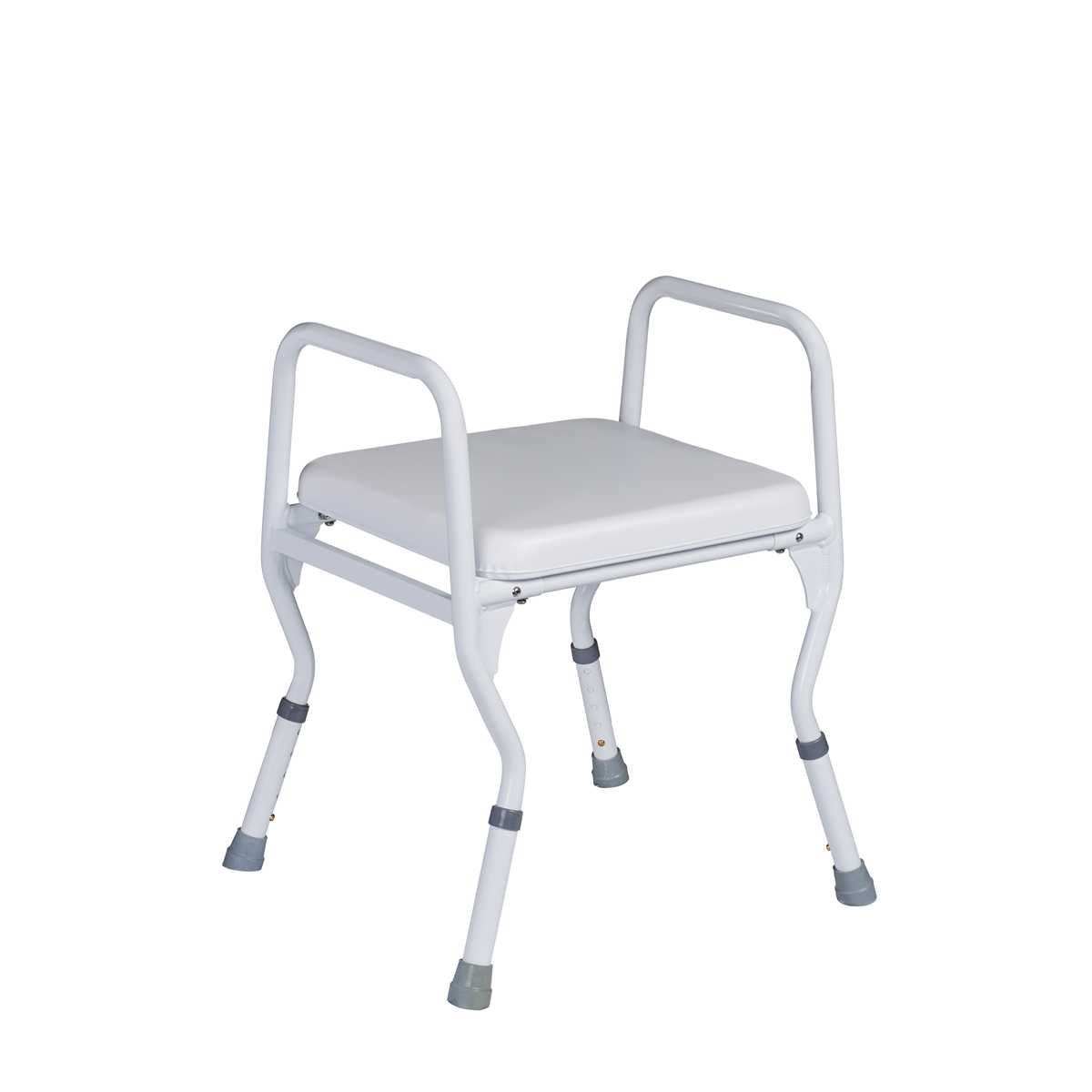 Der Duschhocker Comfort wurde für den Einsatz in der Pflege und in Spitälern entwickelt. Mit seiner gepolsterten Sitzfläche, rutschfesten Gummifüssen und 5-facher Höhenverstellung bietet er Sicherheit und Komfort für Menschen mit eingeschränkter Mobilität. Das stabile, leichte Design erleichtert das Handling und sorgt für Zuverlässigkeit im Badezimmer, während es das Pflegepersonal bei der täglichen Hygiene unterstützt. Produktdetails des Duschhockers Comfort: