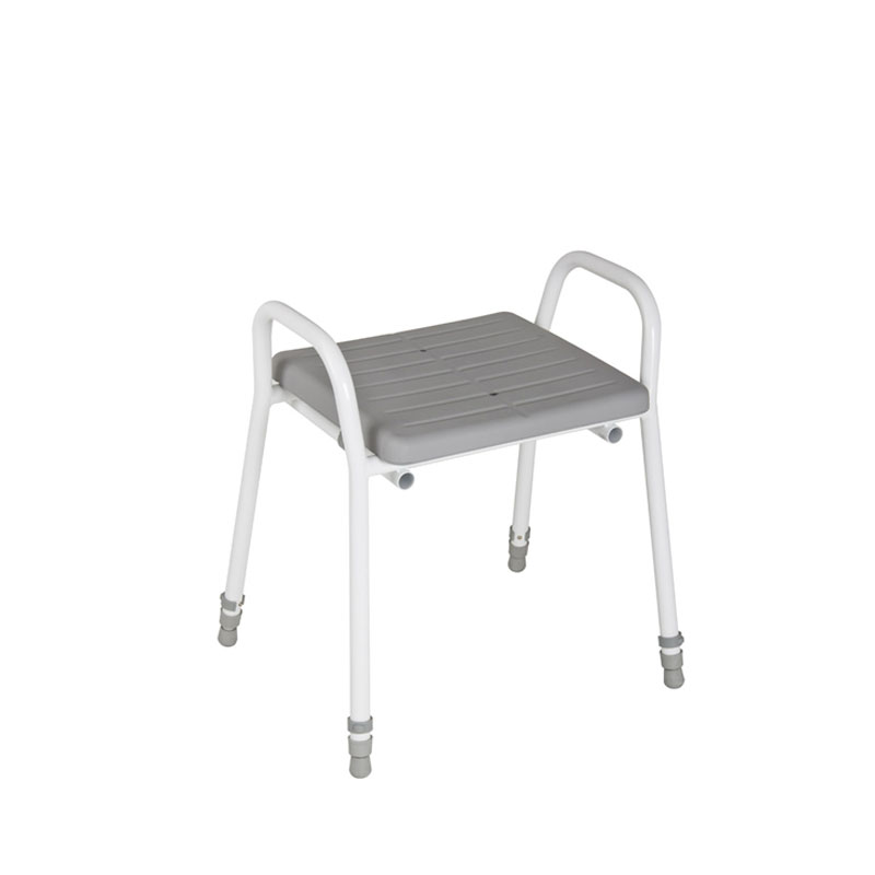 Der Duschhocker Neptun aus Edelstahl bietet eine flexible und hygienische Lösung für die Körperpflege. Mit seiner höhenverstellbaren Konstruktion, dem stapelbaren Design und der leicht abnehmbaren Sitzfläche erleichtert er die Arbeit für Pflegepersonal und bietet Pflegebedürftigen Komfort und Sicherheit. Der Hocker ist mit zwei verschiedenen Sitzflächen erhältlich und je nach Bedarf mit oder ohne Rückenlehne verfügbar. Produktdetails des Duschhockers Neptun: