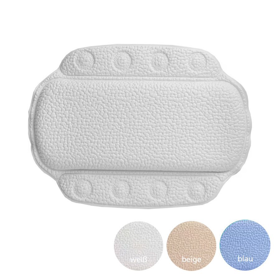 Weiches Badewannen-Kopfpolster für entspanntes, komfortables und bequemes Liegen in der Badewanne. Das Kopfpolster kann mit Saugnäpfen ganz einfach an der gewünschten Stelle in der Badewanne platziert werden.