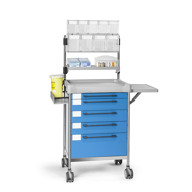 Dieser hochwertige Anästhesiewagen in breiter Ausführung ist speziell für den Einsatz in Operationssälen und medizinischen Einrichtungen konzipiert. Er ist bereits mit allem nötigen Zubehör ausgestattet, um optimale Unterstützung zu bieten und die täglichen Routinen für medizinisches Fachpersonal in der Anästhesie zu erleichtern. Dieser Anästhesiewagen ist ausgestattet mit: