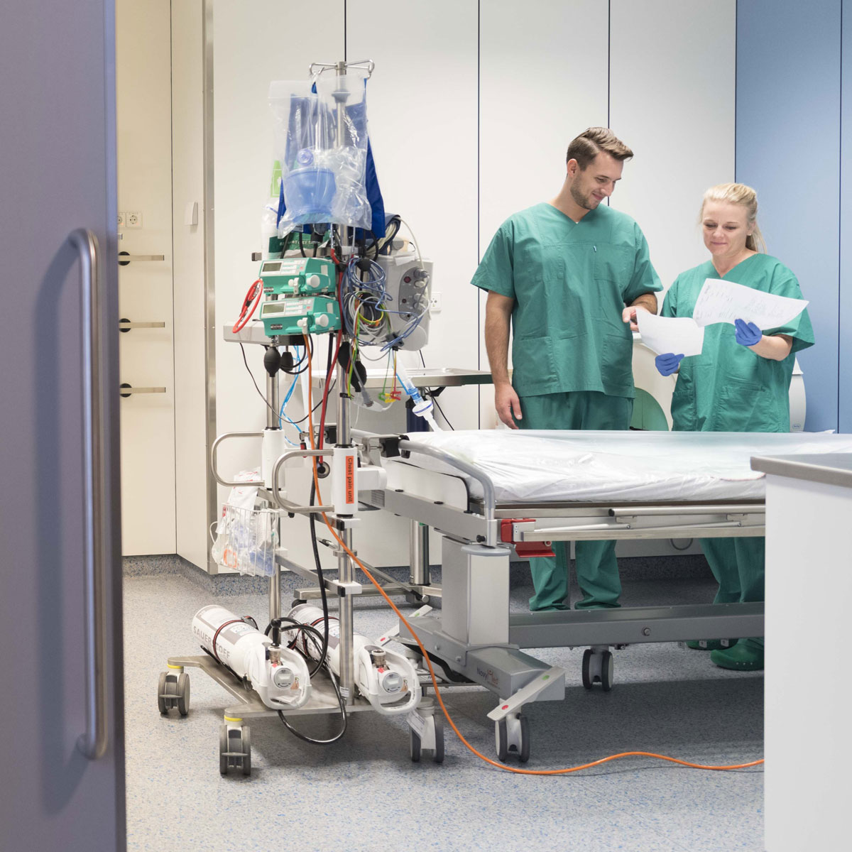 Der Andockwagen ZG-Dock für den innerklinischen Patiententransport kann als Transportwagen einfach am Intensivpflegebett angedockt werden. An ihm lassen sich alle benötigten Apparaturen fürs Monitoring sowie therapeutische und diagnostische Behandlung sicher und komfortabel anbringen.So erfolgt der Patiententransport ohne Therapieunterbrechung und die konstante, sichere Infusionsversorgung des Patienten im Notfall oder bei Verlegung ist garantiert. Die sehr kompakte Bauweise ermöglicht selbst den Zugang zu Aufzügen mit geringer Bautiefe. Produktdetails zum Andockwagen für die Intensivpflege: