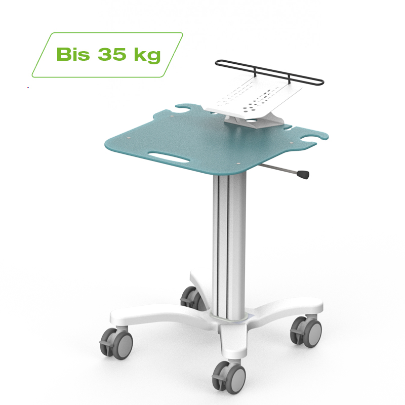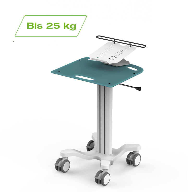 Dieser Computerwagen für Spitäler und Pflegeheime ist mit einer erhöhten Halterung für Laptops bis 17" inkl. Diebstahlsicherung ausgestattet. Er ist höhenverstellbar und daher ideal zum Sitzen oder Stehen geeignet. Dank glatter Oberflächen können Sie den Wagen schnell und unkompliziert reinigen. Verschiedene Geräte sowie diverses Zubehör können an diesem Computerwagen optional befestigt werden. Produktdetails zum Computerwagen ZG-MedCart Pro: