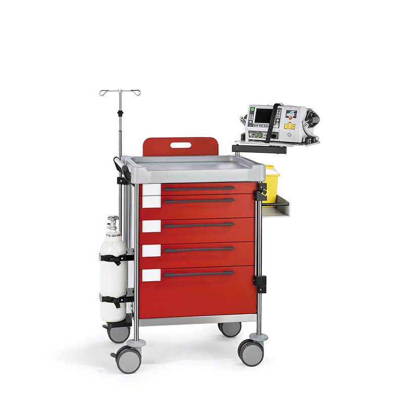 Der Notfallwagen ZF 1296 ist mit allem ausgestattet, das das Pflegefachpersonal im Spital in medizinsichen Notfallsituation benötigt. Immer dann, wenn es schnell gehen muss, hält der Notfallwagen alle nötigen Hilfsmittel, wichtige Medikamente und Instrumenten zur Sicherstellung der Vitalfunktionen bereit.