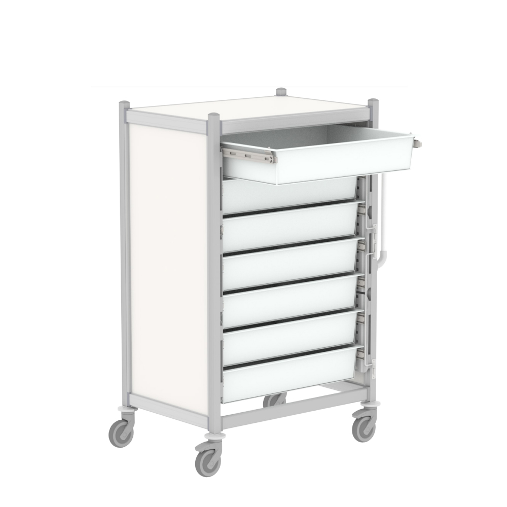 Der Funktionswagen für DaVinci-Instrumente gewährleisten einen sicheren Transport der hochsensiblen OP-Instrumente zwischen Operationssälen, Aufbereitungsräumen und Sterilisationseinheiten. Der Einsatz dieses spezialisierten Funktionswagens trägt massgeblich zur Einhaltung höchster Hygienestandards bei und sichert die Funktionsfähigkeit der teuren und präzisen DaVinci-OP-Systeme.