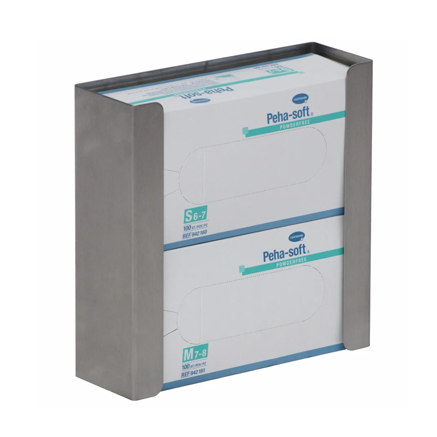 Die praktische Edelstahlhalterung für Einweg-Handschuh-Schachteln ermöglicht ein vereinfachtes, schnelles undsicheres Entnehmen der Handschuhe. Dabei kann die Handschuhbox-Halterungen ja nach Modell auf Funktionswagen oder andere mobile Systeme aufgesteckt oder an Euro-Normschienen befestigt werden. Das macht sie vielseitig einsetzbar. Die Montage ist u.a. möglich auf Computerwagen, EDV-Wagen, Laptopwagen, MRSA-Wagen, Pflegewagen, Wickelwagen.Edelstahl ist leicht zu reinigen, stabil und widerstandsfähig. Es trotzt Feuchtigkeit, Desinfektionsmitteln und anderen chemischen Substanzen, die in Spitälern und Pflegeheimen oft verwendet werden. Produktdetails zur Handschuhbox-Halterung: