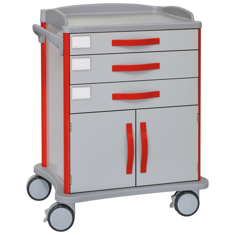 Eine Kombination für noch mehr Flexibilität – Schubladen sowie das ISO-Einschubsystem in einem Wagen. Dieses Funktionswagenmodell kann nach Wunsch kombiniert werden. Wählen Sie z.B. die Schubladen oben oder unten und statten Sie den restlichen Wagen mit dem praktischen ISO Einschubsystem aus, für den individuellen Einschub von Korbeinsätzen, Meditabletts oder Tablaren.
