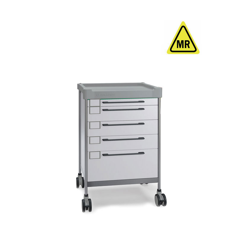 Bei unserem Pflegewagen ZF 365 MRI handelt es sich um einen Funktionswagen aus nicht-magnetischen Materialien, einsetzbar für MRT / MRI Bereiche bis 3 Tesla. Der Wagen hilft, alle nötigen Materialien zu organisieren, aufzubewahren und zu transportieren, die bei einer Untersuchung oder Behandlung notwendig sind. Dieses lässt sich in den unterschiedlich grossen ISO-genormten Schubladen verstauen – für einfachen unkomplizierten Zugriff. Dieser Funktionswagen ist ausgestattet mit: