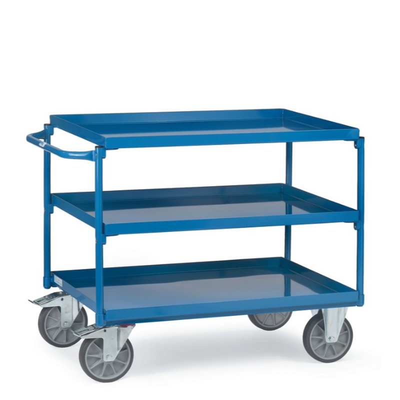 Praktische Tischwagen bestehend aus Wannen mit kleinen Rändern.