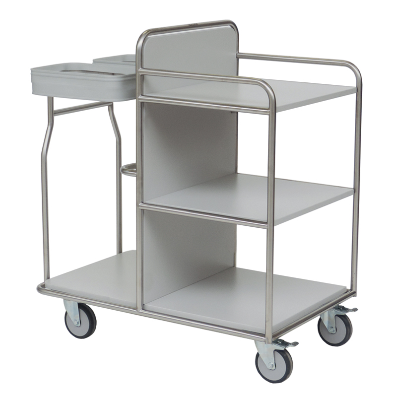 Die Modellreihe Z500 ist auf der offenen Frischwäscheseite mit drei Ablageböden ausgestattet, die von drei Seiten problemlos bedient werden können. Je nach Modell stehen zwei, drei oder vier Einspannringe mit Haftring zur Befestigung von Textilsäcken, Wäschenetzen oder Kunststoffsäcken zur Verfügung.
