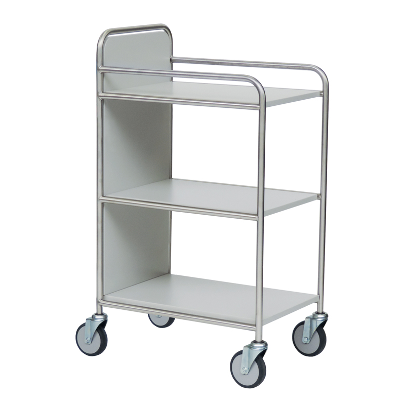 - Schmaler Stationswagen mit offenem Frischwäscheabteil
