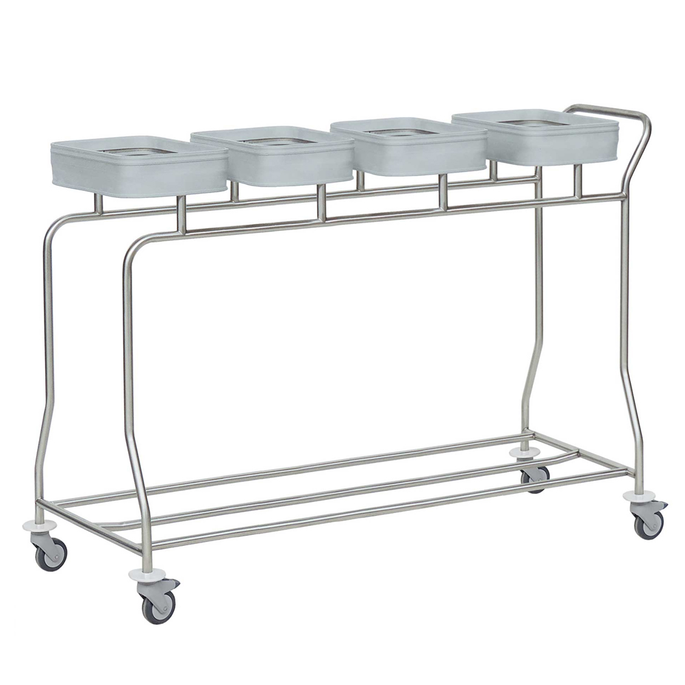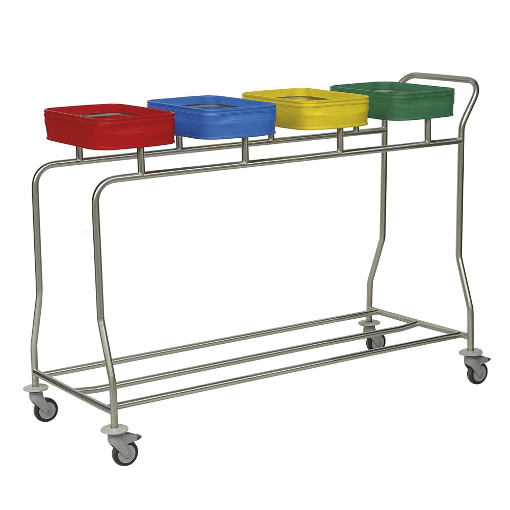 Unser 4-fach Wäsche- und Abfallsammler ist optimal ausgestattet für optimale Abläufe des Wäsche- oder Abfallmanagements in Ihrer Einrichtung. Er ist serienmässig mit einem stabilen Schiebebügel und vier Wandabweisern versehen und bietet damit höchsten Benutzerkomfort im alltäglichen Gebrauch. Ideal geeignet für Spitäler und Pflegeeinrichtungen – für reibungslose, hygienische und effiziente Arbeitsabläufe.