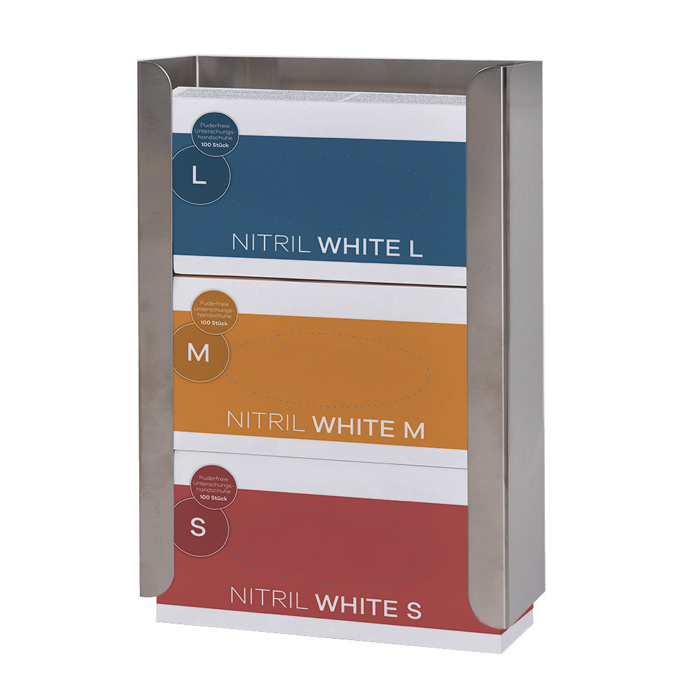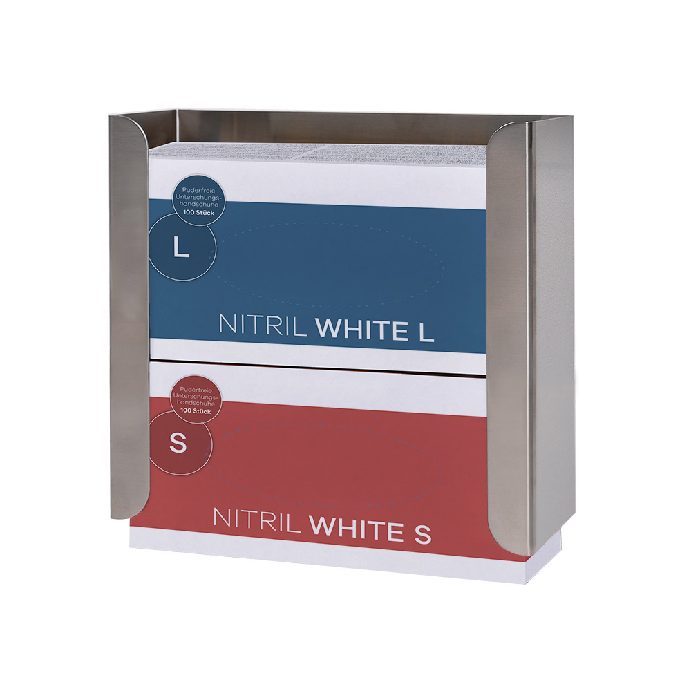 Unsere Handschuhbox-Halterung aus Edelstahl ist die ideale Lösung für die hygienische und platzsparende Aufbewahrung von Einmalhandschuhen in Pflegeeinrichtungen, Spitälern oder Arztpraxen. Dank ihrer hochwertigen Verarbeitung ist die Halterung langlebig und besonders anwenderfreundlich.Sie ist geeignet zur praktischen Wandmontage. So platzieren Sie Ihre Handschuhbox-Halterung einfach am gewünschten Ort und in der richtigen Höhe, perfekt für Ihre Einrichtung. Einmal an der Wand montiert, lässt sich die Halterung spielend leicht befüllen und ermöglicht einen schnellen Zugriff und eine professionelle Organisation Ihrer Einweghandschuhe im Arbeitsalltag.Es stehen zwei Modelle zur Verfügung als Halterung für zwei Handschuhboxen bzw. für drei Handschuhboxen. Wählen Sie Ihr Wunschmodell unten aus. Produktdetails der Handschubox-Halterung: