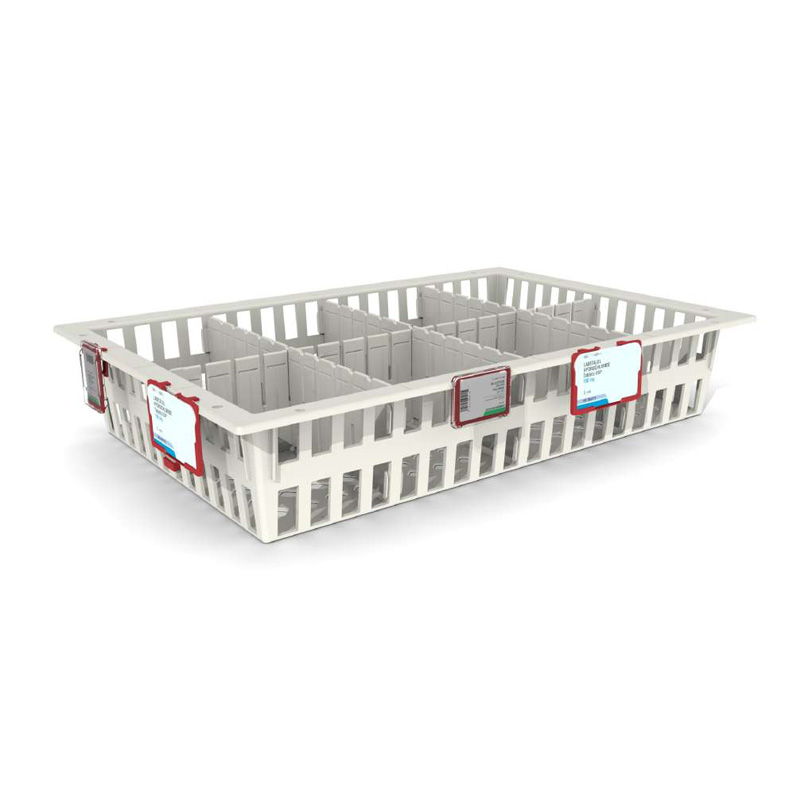 Die Etikettenhalter in vertikaler Ausführung dienen zur Kennzeichnung, Strukturierung und Organisation der unterteilten Fächer in ISO Modulkörben und ISO Modulwannen.Ein Etikettenhalter besteht aus Halter, Schutzfenster und Beschriftungskarte. Alle Teile müssen separat gekauft werden (siehe Tabelle).