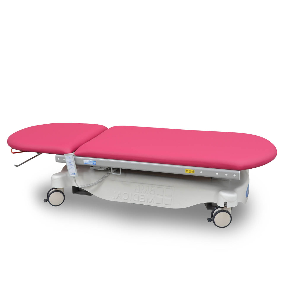 Hochwertige, stabile 2-teilige Untersuchungsliege für Behandlung und Untersuchung von Patienten. Die Höhenverstellung erfolgt elektrisch mittels Handbedienung. Sie ist mit 4 feststellbaren Rollen ausgestattet und ermöglicht eine komfortable Einstiegshöhe von 46 cm. Produktdetails: