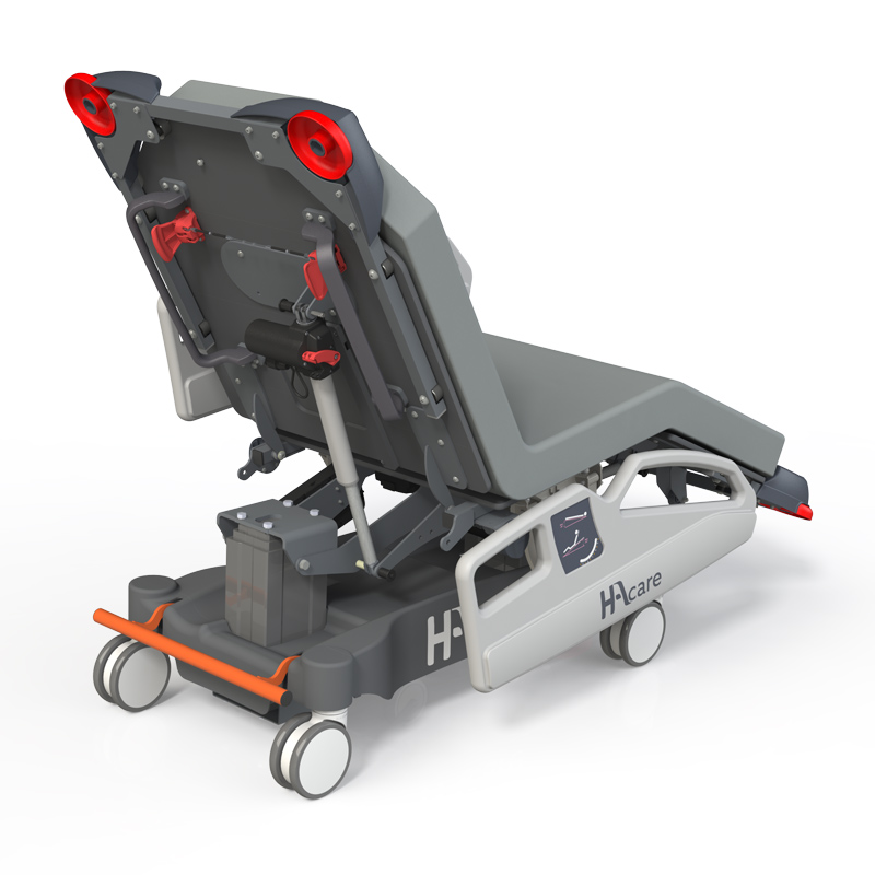- 4 vorprogrammierte Positionen: Sitz-, Liege-, Trendelenburg- und CPR-Position (digitale Aktuatoren)