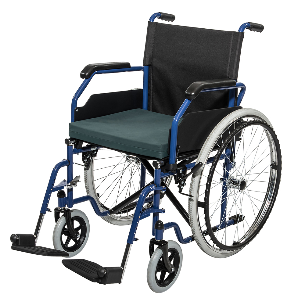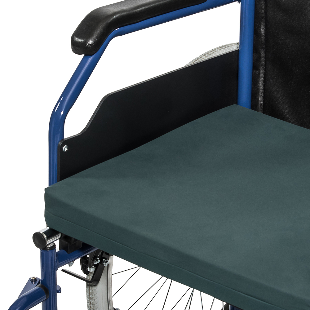 Das Rollstuhlsitzkissen Visco 40x43x5 cm ermöglicht eine druckentlastende, stabile und komfortable Sitzhaltung für Patientinnen und Patienten in Spitälern sowie Bewohnende in Pflegeeinrichtungen, die längere Zeit im Rollstuhl verbringen. Der abnehmbare, waschbare PU-Bezug ist inkontinenzsicher und lässt sich problemlos reinigen. Produktdetails des Rollstuhlsitzkissens Standard: