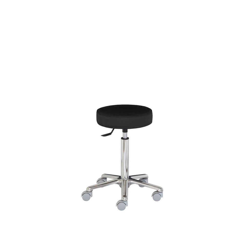 Der weich gepolsterte Arbeitshocker ist ohne Rückenlehne ist ideal geeignet für den Einsatz in Praxis, Spital und Pflegeheim.