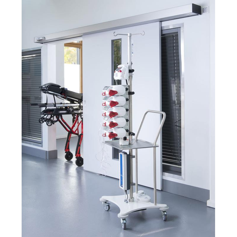 Urologieständer Lifter für rückenschonende Bedienung und bequeme Höhenverstellung dank elektrischem Antrieb und komfortablem Fussschalter. Dieses Modell eignet sich insbesondere für den mobilen Einsatz durch seine lange Akku-Laufzeit. Auch bei Stromausfall erfolgt keine Absenkung.Die Höhenverstellung erfolgt über einen akkubetriebenen Elektromotor mit selbsthemmender Spindel. Der Motor ist durch ein Sicherheitsgehäuse geschützt. Es gibt keine herumliegenden Kabel, daher auch keine Stolpergefahr.