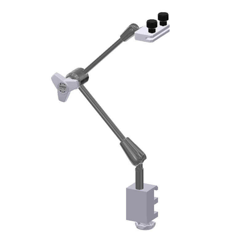 Die Druckrezeptorenplatten-Halterung zur Verwendung auf Intensivpflegestationen (IPS) besteht aus Klemmstück, Gelenkarm 400 mm, Säule 50 mm und Schienensockel. Mit DIN-Schienenhalterung.
