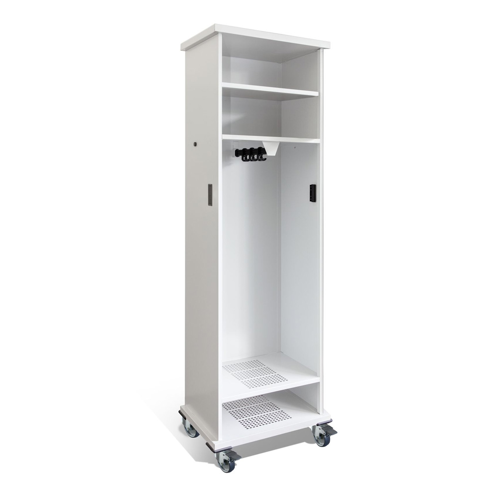 Dieser Garderobenschrank eignet sich optimal als offener Patientenschrank für Spitäler oder andere Einrichtungen des Gesundheitswesens. Der Stahl-Korpus mit Spezial-Innenprofil gewährleistet hohe Stabilität und ermöglicht eine komfortable Entnahme von Kleidung und Taschen. Der Patientenschrank verfügt zudem über eine hochwertige Einbrennbeschichtung für hohe UV- und Korrosionsbeständigkeit. Die Schrankseiten sind jeweils mit einer Griffschale inkl. komfortablem Kunststoffeinsatz ausgestattet für erleichterten Transport des Schrankes. Ein Kunststoff-Eckenschutz verhindert Beschädigungen. Aufteilung des offenen Patientenschranks: