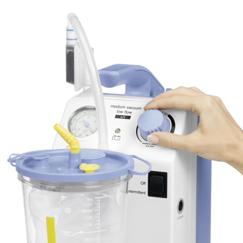 Die tragbare Absaugpumpte Vario ist leicht, aber stabil und für kleine chirurgische Eingriffe sowie die Absaugung der Atemwege konzipiert. Als Allroundsauger kann das Gerät in Spitälern, Arztpraxen und in der Heimpflege eingesetzt werden. Die Absaugpumpe Vario zeichnet sich zudem durch einen niedrigen Geräuschpegel und geringe Vibration aus. Das geringe Gewicht und der integrierte Traggriff erleichtern den Transport. Produktdetails der tragbaren Absaugpumpe Vario: