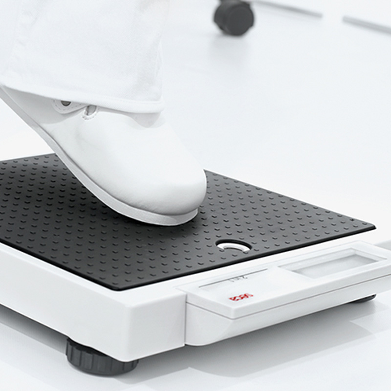 Die klassische Flachwaage für den medizinischen Einsatz in Praxis, Spital oder Pflegeeinrichtung verfügt über eine Präzise Wägetechnologie und lässt sich bequem per Tip-on-Funktion einschalten. Die praktische Mutter-Kind-Funktion erleichtert das Wiegen von Kleinkindern auf dem Arm der Mutter oder des Vaters. Der stählerne Rahmen und die hochwertige Konstruktion mit verrippten Kunststoffbauteilen garantieren hohe Stabilität und eine lange Lebensdauer. Die genoppte Gummioberfläche macht die Waage rutschfest und besonders sicher. Produktdetails zur Flachwaage 877: