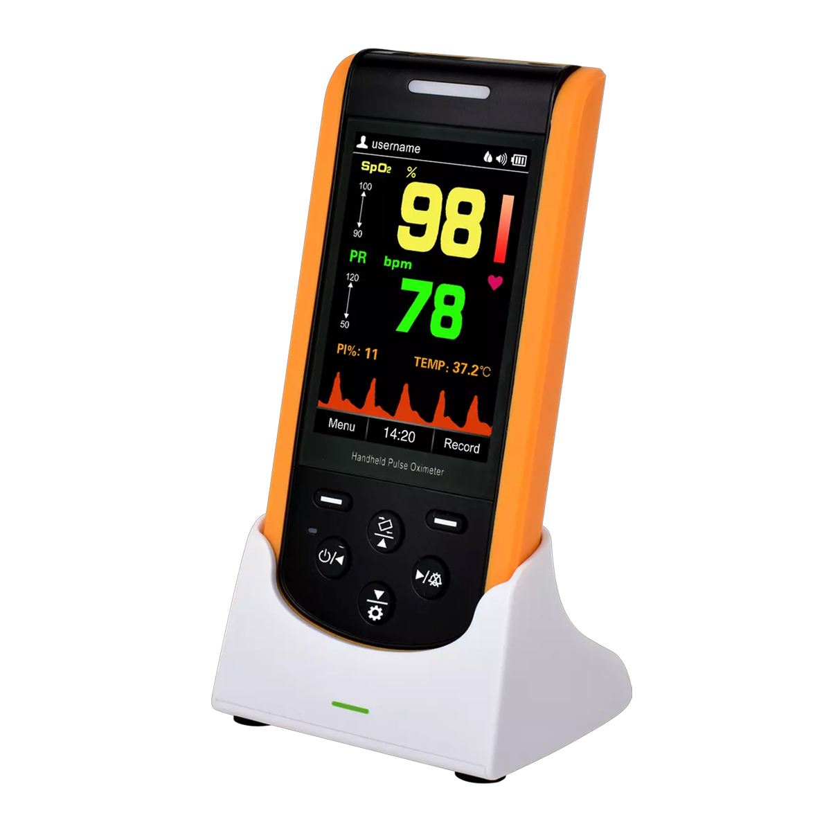 Das wiederaufladbare Handpulsoximeter mit Thermometer ist für die hochpräzise Messung von SpO2 (Blutsauerstoffsättigung), Pulsfrequenz (PR), PI (Perfusionsindex) und Temperatur konzipiert. Es eigent sich für die Messung bei Erwachsene und Kindern oder als Fussoximetermessung bei Säuglingen. Dieses Pulsoximeter wurde entwickelt für den Einsatz in Spitälern, Gesundheitseinrichtungen, Pflegeheimen und anderen medizinischen Zwecken. Produktdetails zum Handpulsoximeter mit Thermometer:
