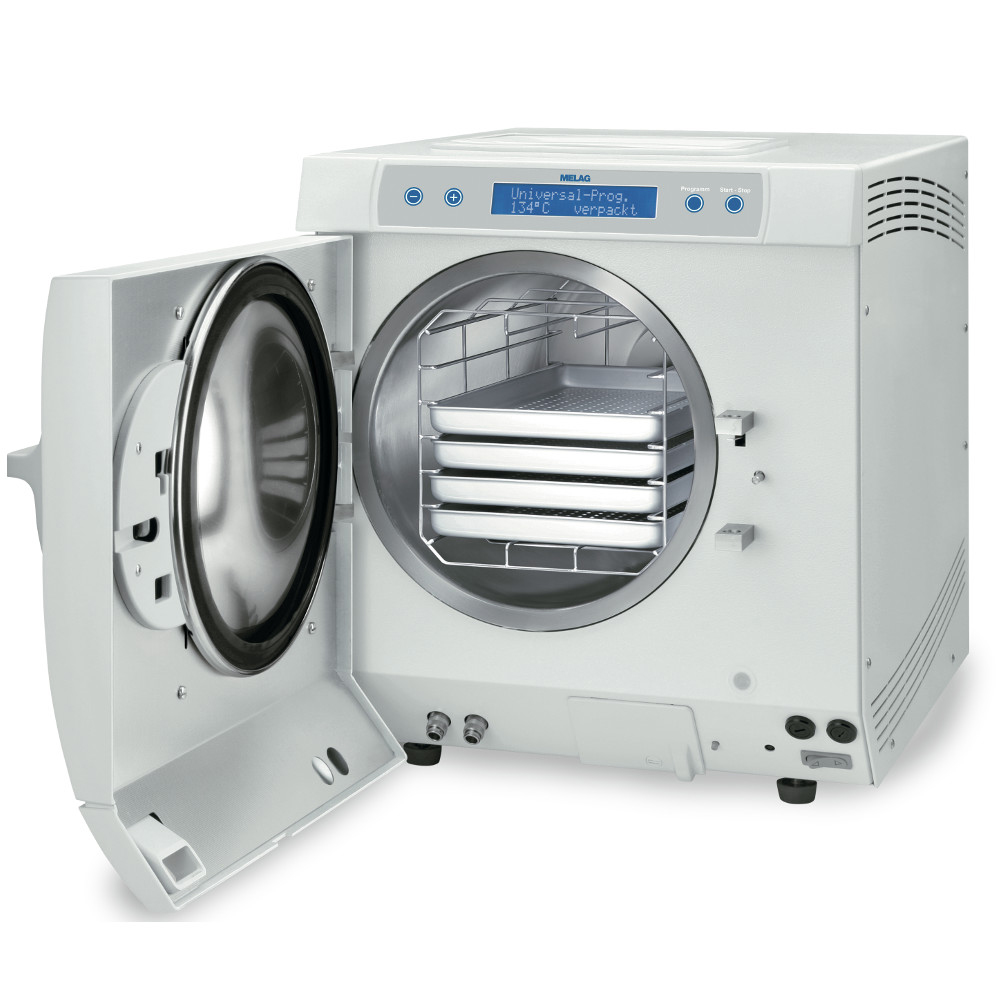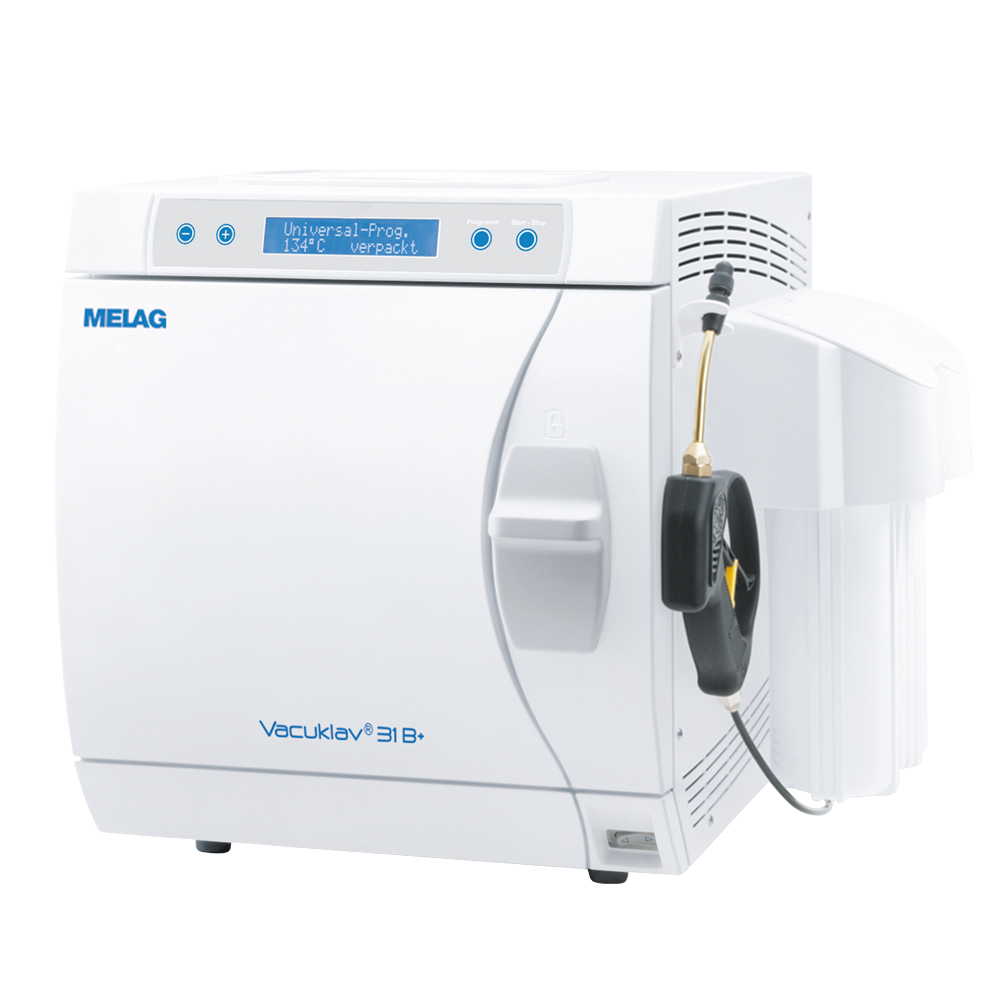 Das Autoklaviergerät der Klasse B eignet sich ideal für die Sterilisation von Hohlrauminstrumenten und bietet herausragende Leistung für alle Anwendungen. Mit einer einfachen Bedienung über nur vier Knöpfe und einer klaren LCD-Anzeige ermöglicht es eine effiziente Nutzung.Das kompakte Tischgerät verfügt über einen integrierten Wassertank, optionalen Wasseranschluss und bietet diverse Programme, einschliesslich eines speziellen Prionenprogramms. Zudem sorgt die präzise Mikroprozessorsteuerung für maximale Sicherheit und Prozessüberwachung, um höchste Sterilisationsergebnisse zu gewährleisten. Produktmerkmale des Autoklaviergerätes Klasse B: