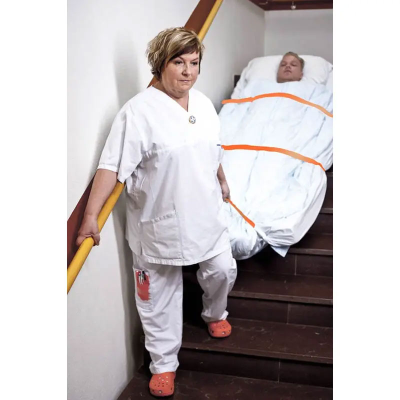 Mit diesem Evakuierhungstuch lässt sich eine nicht-mobile Person bis max. 210 kg im Falle eines Brandes oder einer anderen Gefahr schnell evakuieren. Das Material ist äusserst strapazierfähig, verfügt über eine hohe Gleitfähigkeit auf sowohl nassen als auch auf trockenen Oberflächen und ist röntgen-transparent. Die Befestigungsgurte sind mit starken Klettverschlüssen ausgestattet und gut sichtbar orange markiert.Das Evakuierungstuch verfügt zudem an jeder kurzen Seite über einen extra langen Zuggriff, der es dem Personal ermöglicht, die Evakuierung mit geradem Rücken durchzuführen und so die körperliche Belastung zu verringern. Produktdetails: