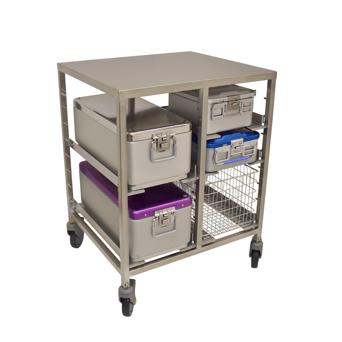 Edelstahl Fallwagen OP-RACK 1-fach, ideal geeignet für den Transport oder die Aufbewahrung von Sieben und Sterilgut-Containern DIN 600 x 300 mm.