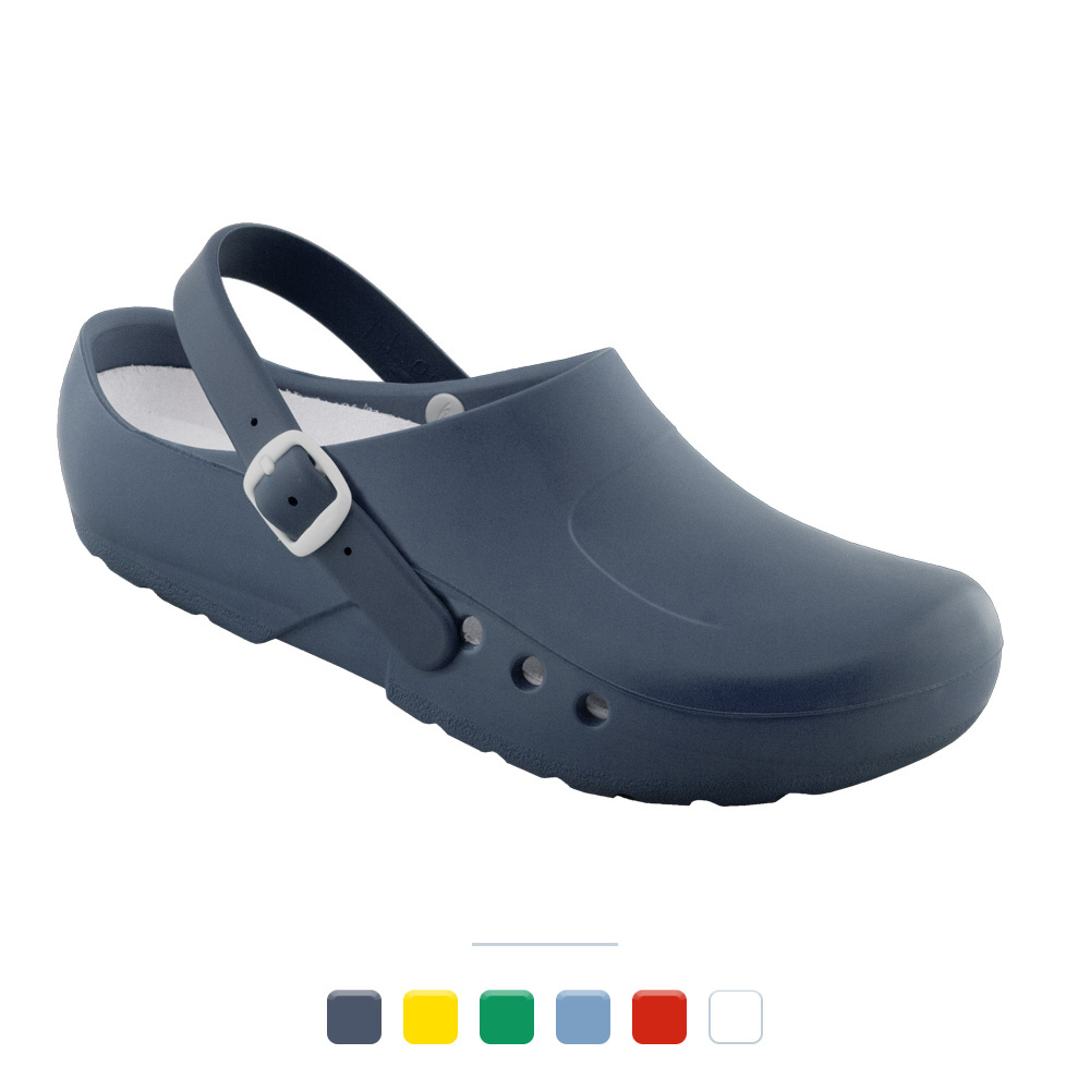 Der Chiroclog ORTHO mit Seitenbelüftung und Fersenriemen ist ein zertifizierter OP-Schuh, der speziell für die Verwendung orthopädischer Einlagen entwickelt wurde. Er eignet sich ideal für medizinisches Fachpersonal, das täglich hohen körperlichen Belastungen ausgesetzt ist. Der anatomisch geformte Clog unterstützt eine gesunde Körperhaltung und sorgt für spürbare Entlastung beim langen Stehen und Gehen im OP, Spital oder in der Arztpraxis. Hygienisch, komfortabel und sicher – perfekt abgestimmt auf den anspruchsvollen Berufsalltag.