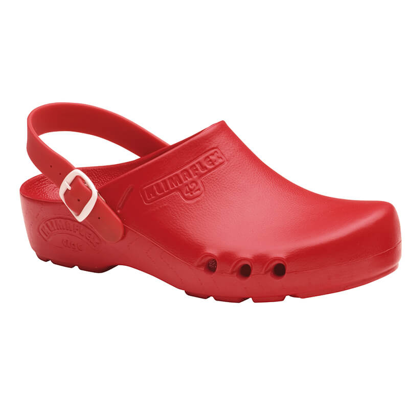 Das rutschhemmende, wie eine Bärentatze geformte, besonders griffige Sohlenprofil sorgt für guten und sicheren Stand auch bei rutschigen Böden im OP oder auf der Station. Stösse werden durch die Schockabsorption gemildert. Der Klimaflex Classic ist besonders bequem, denn die Füsse werden durch das anatomisch geformte Fussbett und die optimale Absatzhöhe entlastet. Dieser OP-Clog stützt, wo der Fuss besonders beansprucht wird und hält, wo der Fuss Halt braucht.Produktdetails des Klimaflex Classic mit Seitenbelüftung und Fersenriemen