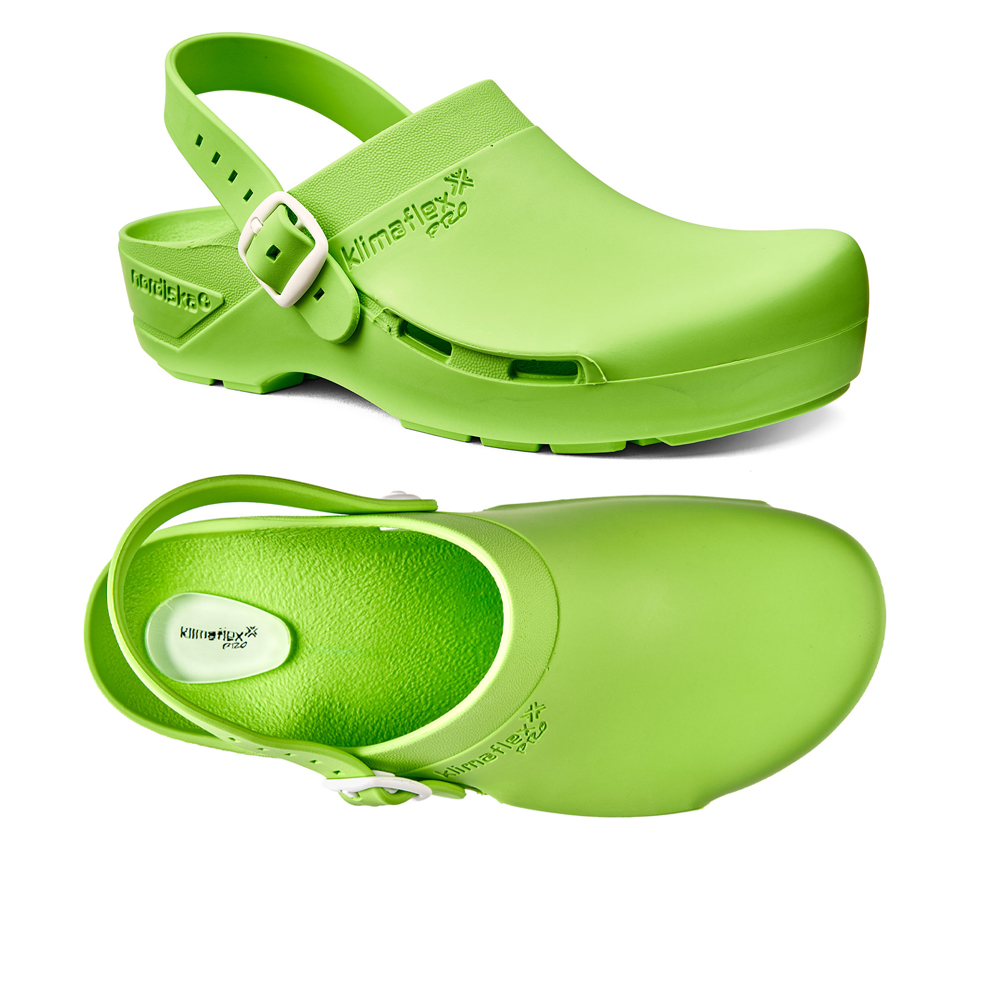 • Der Klimaflex Pro AIR GEL überzeugt mit seinem modernen Design. Durch die ESD Zertifizerung bietet dieser OP-Clog erstklassige antistatische Eigenschaften. Natürlich besitzt der Klimaflex Pro AIR GEL das bewährte ergonomische Fussbett mit perfekter Passform. Dieses stützt, wo der Fuss beansprucht wird und hält, wo der Fuss Halt braucht. Die "überdachten" Belüftungslöcher und das schockabsorbierende Material fördern einen komfortablen Berufsalltag in der Pflege.