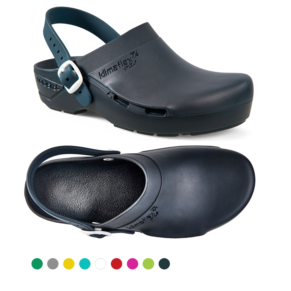 OP-Clog KLIMAFLEX PRO mit Fersenriemen, Seitenbelüftung, modernem Design, verbesserter Rutschhemmung und erstklassigen Antistatik Eigenschaften. Der vegane Clog für OP und Station.