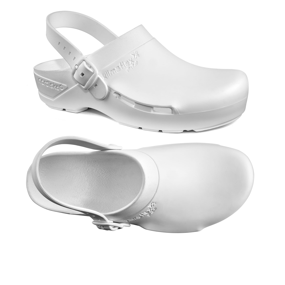 OP-Clog KLIMAFLEX PRO mit Fersenriemen, Seitenbelüftung, modernem Design, verbesserter Rutschhemmung und erstklassigen Antistatik Eigenschaften. Der vegane Clog für OP und Station. Produkteigenschaften des OP-Clogs Klimaflex PRO: