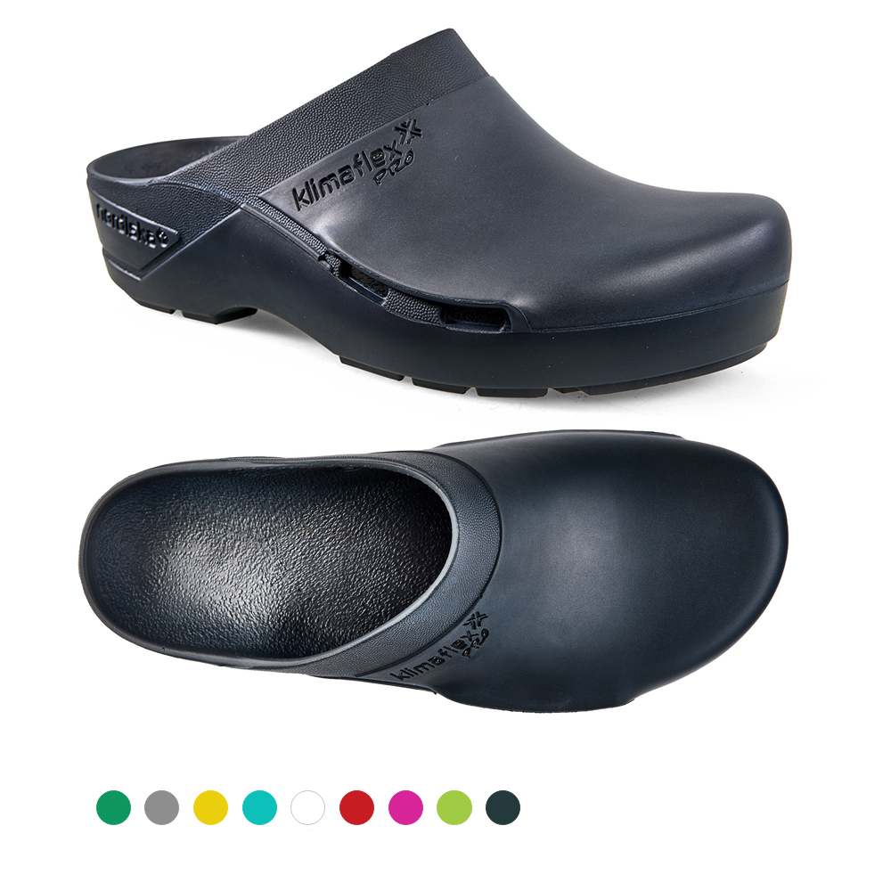 OP-Clog KLIMAFLEX PRO mit Seitenbelüftung, modernem Design, verbesserter Rutschhemmung und erstklassigen Antistatik Eigenschaften. Der vegane Clog für OP und Station. Produkteigenschaften des OP-Clogs Klimaflex PRO: