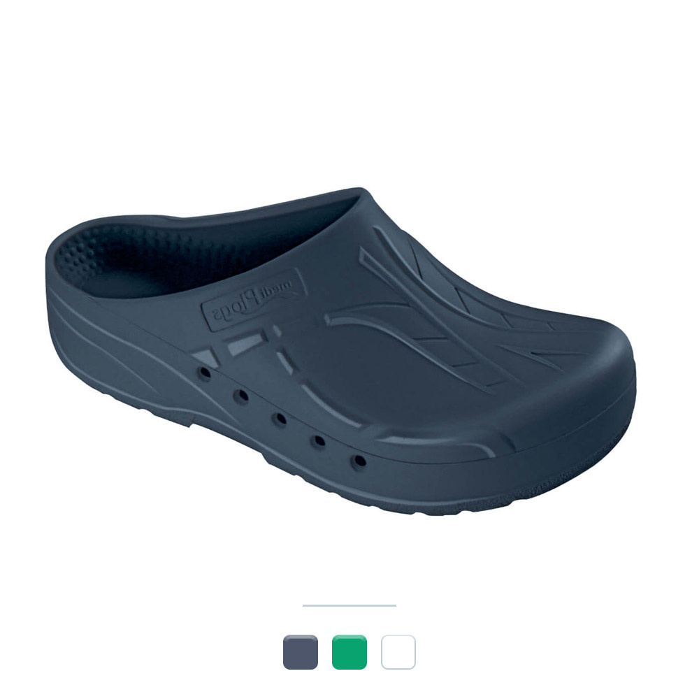 Die Mediplogs mit Seitenbelüftung überzeugen durch ihr orthopädisches Fussbett mit Fersenerhöhung, das für ermüdungsfreies Stehen und Gehen in OP, Pflege und Arztpraxis sorgt. Zudem bieten die rutschhemmende Sohle und der verstellbare Fersenriemen sicheren Halt bei jeder Bewegung.