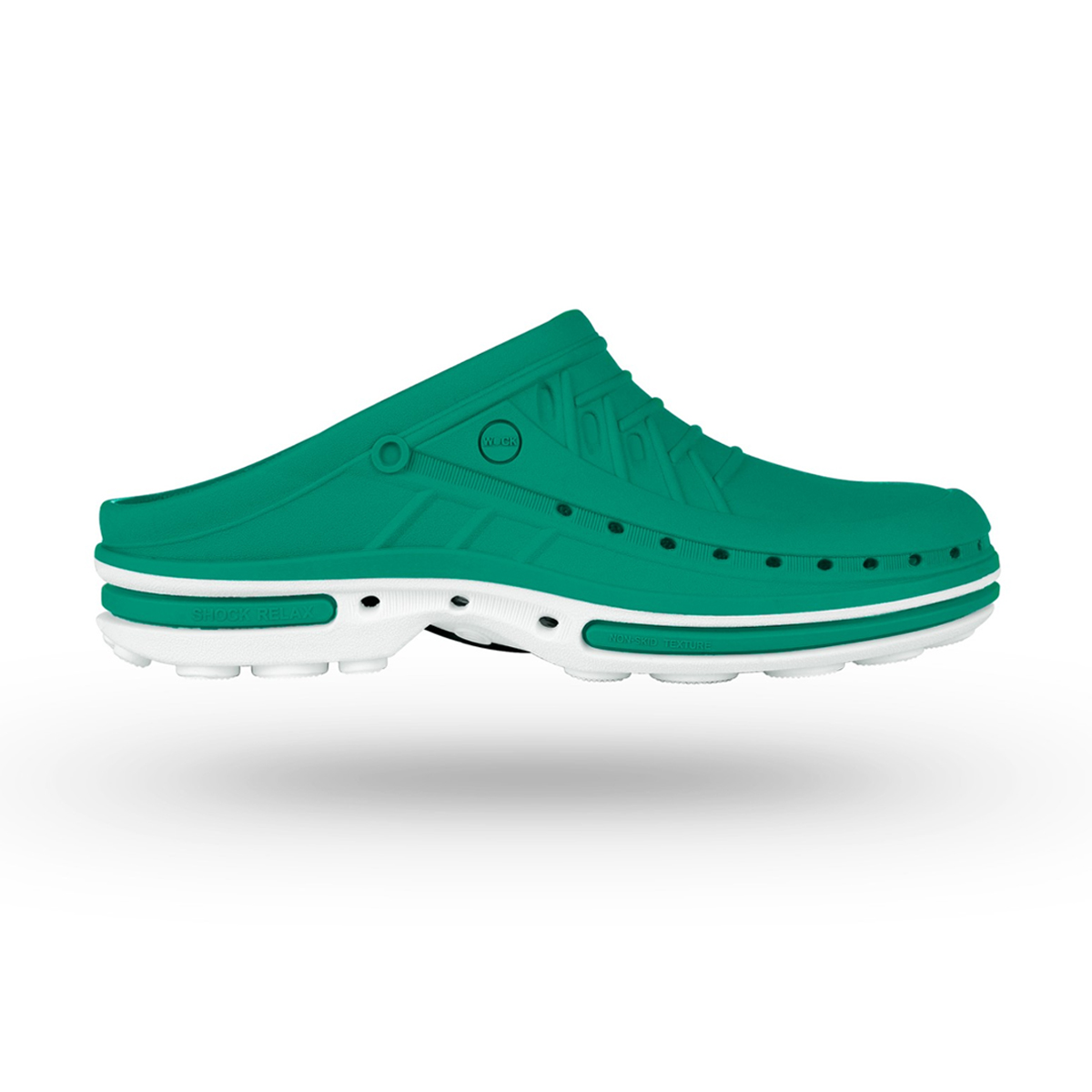 Der Wock Clog ist ideal für den Einsatz im Operationssaal, in Spitälern und anderen Gesundheitseinrichtungen sowie in der pharmazeutischen Industrie. Er wurde geschaffen für Berufstätige, die in anspruchsvollen Tätigkeiten arbeiten, bei denen sie viele Stunden im Stehen verbringen. Die rutschfeste und stossdämpfende Sohle erhöht die Sicherheit und kann vorbeugend gegen das Gefühl müder Beine wirken.