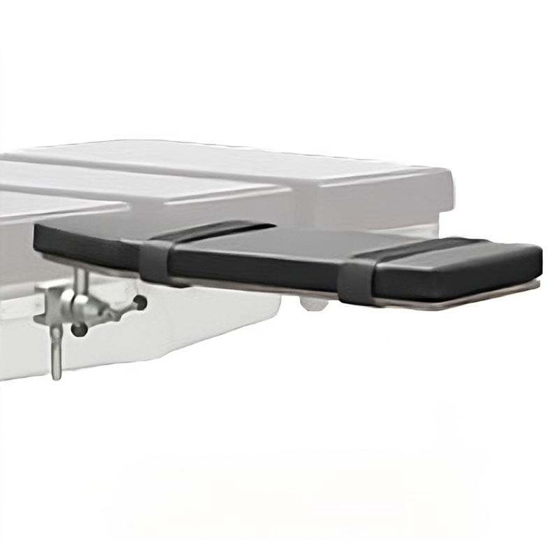 Der gerade Armtisch mit Fixiergurten ist ein praktisches Zubehör für den OP-Tisch zur sicheren Lagerung des Arms bei Eingriffen in Rücken-, Bauch- oder Seitenlage. Er besteht aus einem drehbaren Stützarm aus elektropoliertem Edelstahl, einer stabilen Stützplatte aus HPL, einer gepolsterten Matratze aus Polyurethanschaum mit Aussparungen sowie Fixiergurten zur Stabilisierung. Der Armtisch lässt sich um die eigene Achse drehen, und die Matratze kann dank Klettverschluss schnell und einfach montiert oder abgenommen werden. Produktdetails des geraden Armtisches mit Fixiergurten: