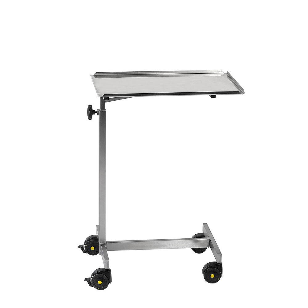Der fahrbare Hand-OP-Tisch mit H-Fuss-Gestell kann aufgrund der elektrisch leitfähigen Doppelrollen überall dort eingesetzt werden, wo er benötigt wird. Er zeichnet sich durch hochwertige Material- und Verarbeitungsqualitäten aus. Das Gestell und die Tischplatte sind komplett aus Edelstahl gefertigt. Der fahrbare Hand-OP-Tisch mit H-Fuss-Gestell ist mit bis zu 15 kg belastbar. Das Fussgestell hat die Form eines „H“, besteht aus einer Längs- sowie zwei Querstreben und ist mit vier elektrisch leitfähigen Doppelrollen ausgestattet.