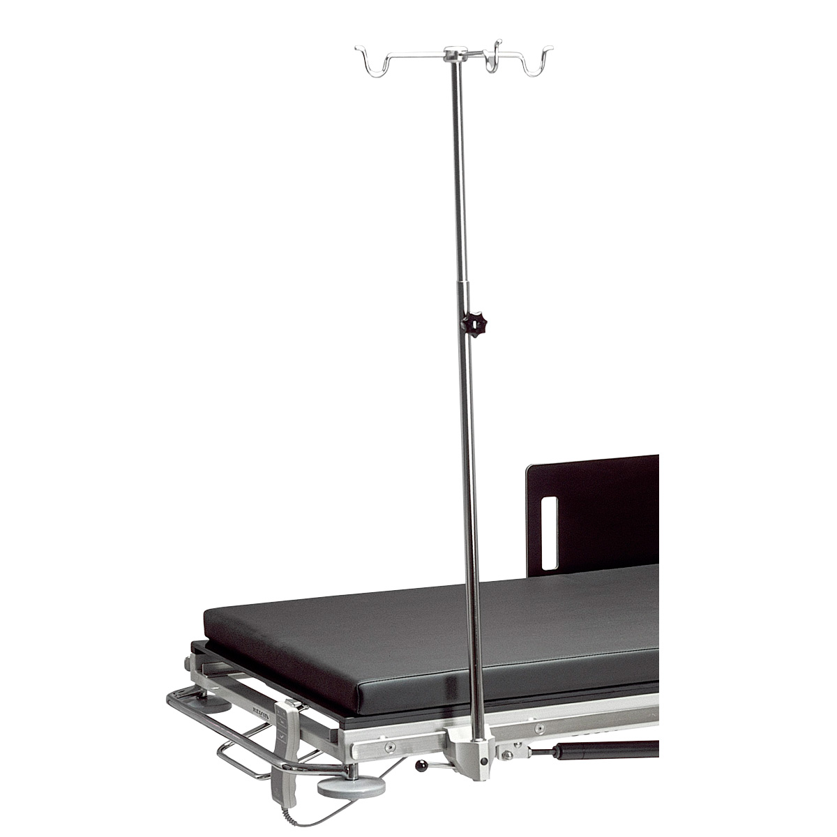 Die Infusionshalterung für OP-Tisch mit Schraubbedienung und praktischem Schnellverschluss-Kloben ermöglicht eine stabile, sichere und flexible Befestigung direkt an OP-Tischschienen. Die stufenlos höhenverstellbare Konstruktion verfügt über drei belastbare Haken zur Aufnahme von Infusionsbeuteln oder leichtem medizinischem Zubehör während operativer Eingriffe. Der Schnellverschluss sorgt für eine werkzeuglose und zuverlässige Fixierung – ideal für den flexiblen Einsatz im OP-Bereich. Produktdetails der Infusionshalterung für OP-Tisch: