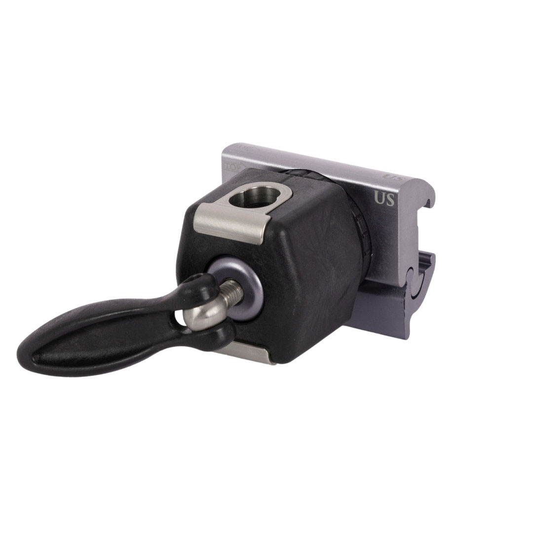 Der KYRA Radialstellklobe für runde und rechteckige Pfosten ermöglicht die sichere und stabile Befestigung von Zubehör wie KYRA Schulterstützen an der Normschiene eines OP-Tisches. Er ist kompatibel mit runden Pfosten sowie flachen Pfosten. Die radiale Verstellung erfolgt präzise über einen gekerbten Sicherungsring, während eine einzige Schraube die gleichzeitige Verriegelung an Schiene und Zubehör gewährleistet – für eine schnelle Fixierung im OP.