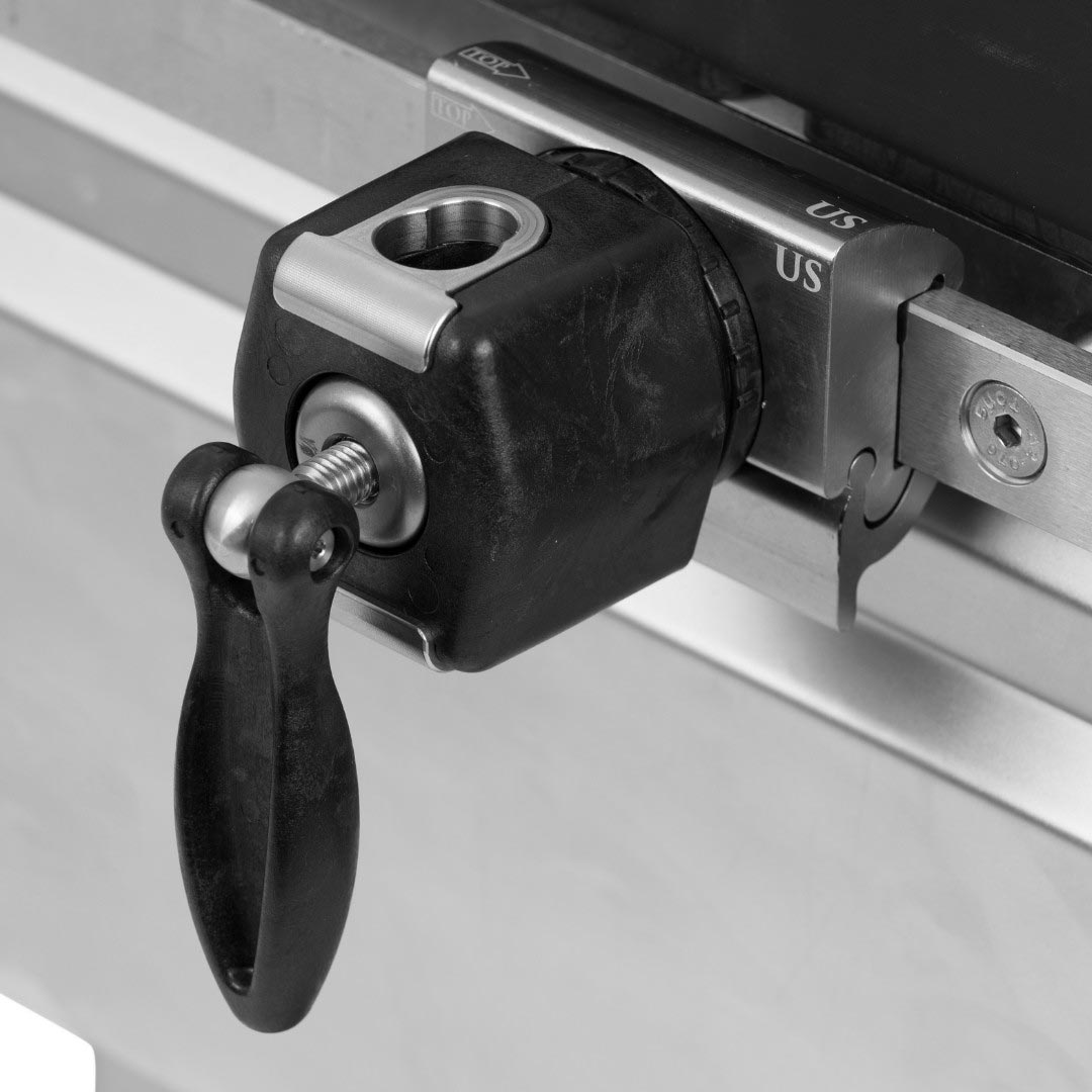 - Einhandbedienung: eine Schraube verriegelt Zubehör und Schiene gleichzeitig