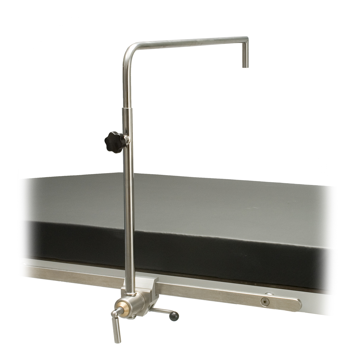 Der Anästhesiebogen bzw. Narkosebügel dient zur Aufnahme eines sterilen Lakens, das während eines chirurgischen Eingriffs an einer beliebigen Stelle am Körper des Patienten aufgehängt werden kann. Der Narkosebügel ist höhenverstellbar. Er wird geliefert inkl. rotierbarem Kloben mit Schnellspannklaue. Er kann an der Normschiene eines OP-Tisches befestigt werden.