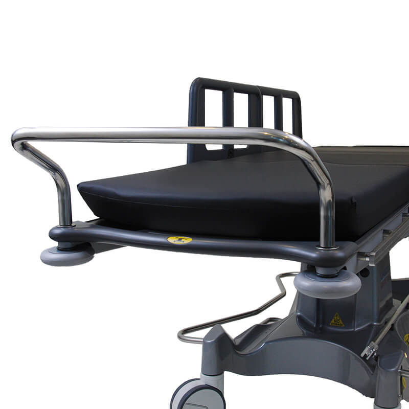 Praktischer Zusatzschiebebügel am Fussende als Zubehör für den mobilen OP-Tisch ZG40 sowie die ZG30 Patiententransportliege.