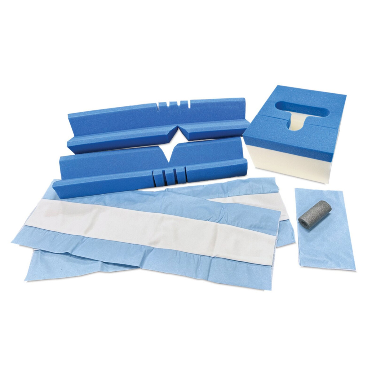Das Einweg-Positionierungsset dient zur hygienischen Abdeckung des KYRA Curve Spine Frames bei Wirbelsäulenoperationen in Bauchlage. Die verschiedenen Komponenten des Sets sorgen für eine sichere und komfortable Polsterung und schützen gleichzeitig alle relevanten Teile des Spine Frames vor Kontamination. Das Set ist exakt auf die Form und Funktion des Hauptsystems abgestimmt und wird im praktischen 6er-Pack geliefert.