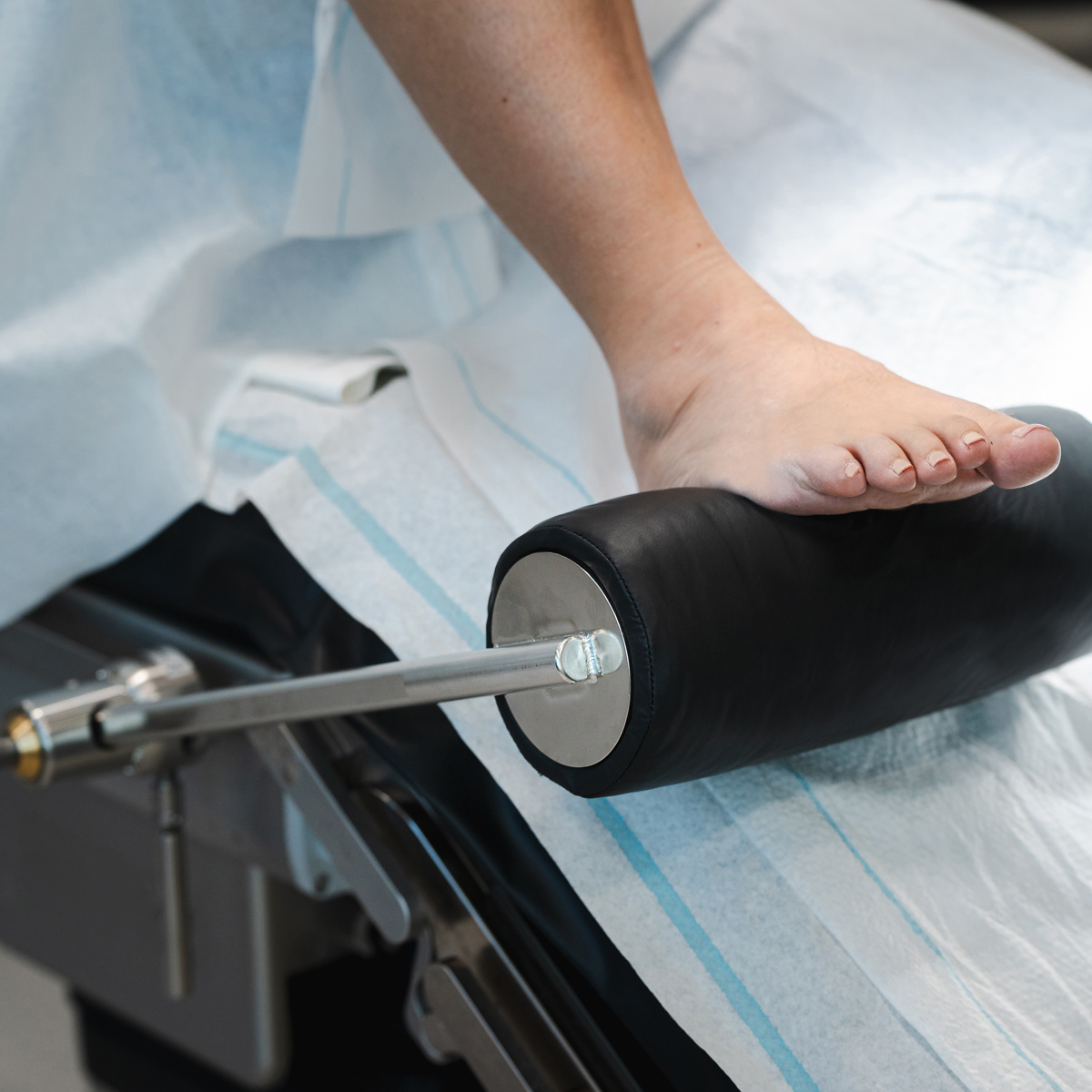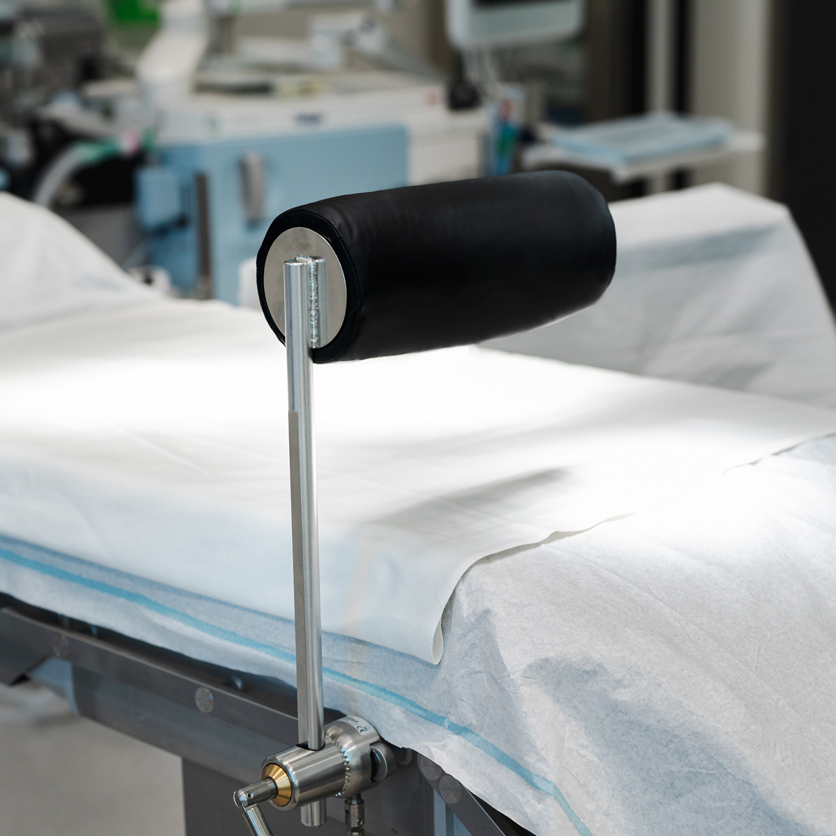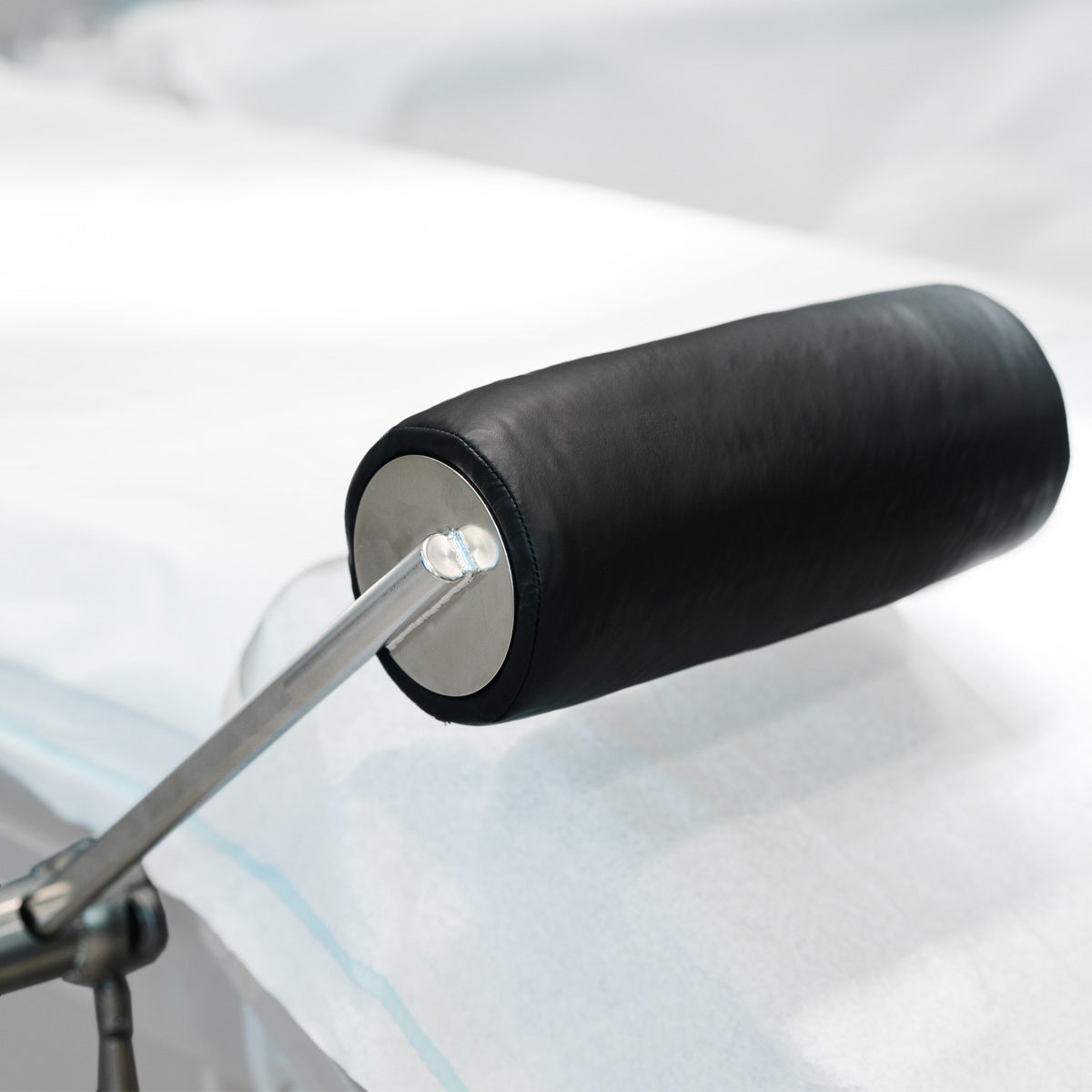 Die horizontal ausgerichtete Meniskusrolle bietet stabilen Halt und gezielte Lagerung für Knie, Fuss oder Bein während orthopädischer Eingriffe. Dank ihrer schmalen Bauform und der präzisen Ausrichtung eignet sie sich ideal zur Positionierung bei Operationen am Kniegelenk oder Unterschenkel. Die massive Ausführung aus Edelstahl mit Polyurethankissen sorgt für hygienische Sicherheit und einen hohen Lagerungskomfort im OP-Bereich. Produktdetails der Meniskusrolle / Gelenkstütze (horizontal):